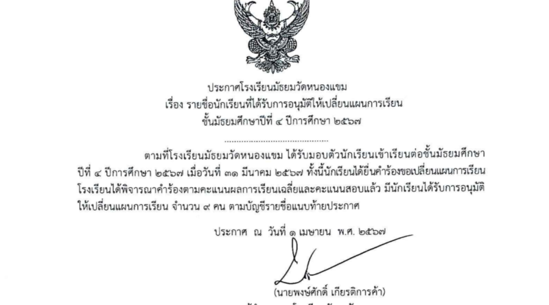 ข่าวสำหรับนักเรียนประกาศ / ประชาสัมพันธ์ 01/04/2567 admin ประกาศ รายชื่อนักเรียนที่ได้รับการอนุมัติให้เปลี่ยนแผนการเรียน ชั้นมัธยมวัดหนองแขม ปีการศึกษา 2567 Read More