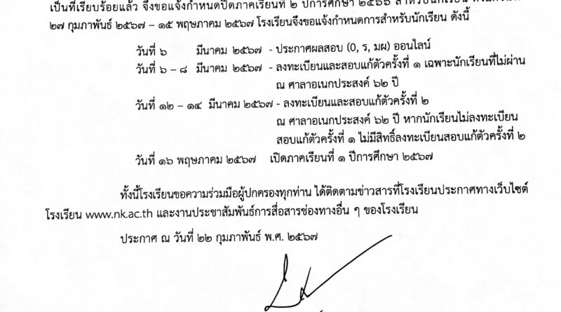 ข่าวสำหรับครูข่าวสำหรับนักเรียนประกาศ / ประชาสัมพันธ์ 25/02/2567 admin แจ้งกำหนดการ นักเรียนและผู้ปกครอง ประกาศผลสอบ ลงทะเบียนสอบแก้ตัว และวันเปิดภาคเรียนที่ 1 ปีการศึกษา 2567 Read More