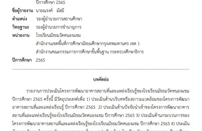 ข่าวสำหรับครูข่าวสำหรับนักเรียนประกาศ / ประชาสัมพันธ์ 07/11/2566 admin การประเมินโครงการพัฒนาอาคารสถานที่และแหล่งเรียนรู้ของโรงเรียนมัธยมวัดหนองแขมปีการศึกษา 2565 Read More