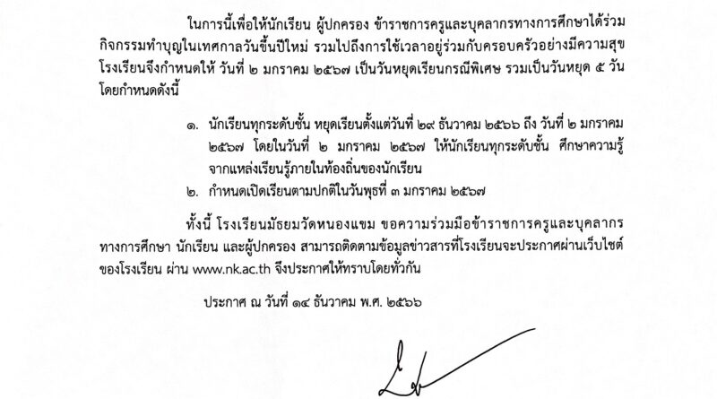 ข่าวสำหรับครูข่าวสำหรับนักเรียนประกาศ / ประชาสัมพันธ์ 15/12/2566 admin ประกาศหยุดเรียนกรณีพิเศษทุกระดับชั้น วันที่ 2 มกราคม 2567 Read More
