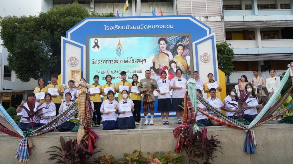 ผอ.สุริยันต์ เหล่ามะลึก ประธานเปิดงานนิทรรศการสัปดาห์ห้องสมุด “ศาสตร์และศิลป์ แผ่นดินของแม่” โดยมีงานห้องสมุดและกลุ่มสาระการเรียนรู้ภาษาไทยเป็นแม่งาน เมื่อวันที่ 28 พฤศจิกายน 2568 นี้