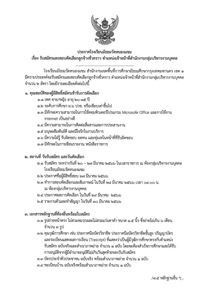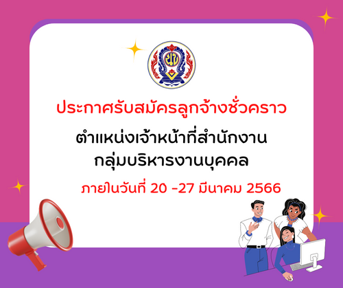ประกาศ / ประชาสัมพันธ์ ประกาศรับสมัครลูกจ้างชั่วคราว ตำแหน่งเจ้าหน้าที่สำนักงานกลุ่มบริหารงานบุคคล 17/03/2566 admin จำนวนคนดู: 98