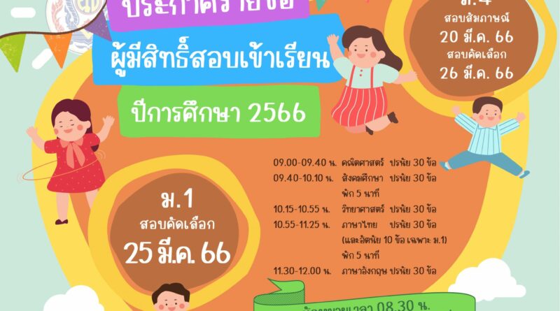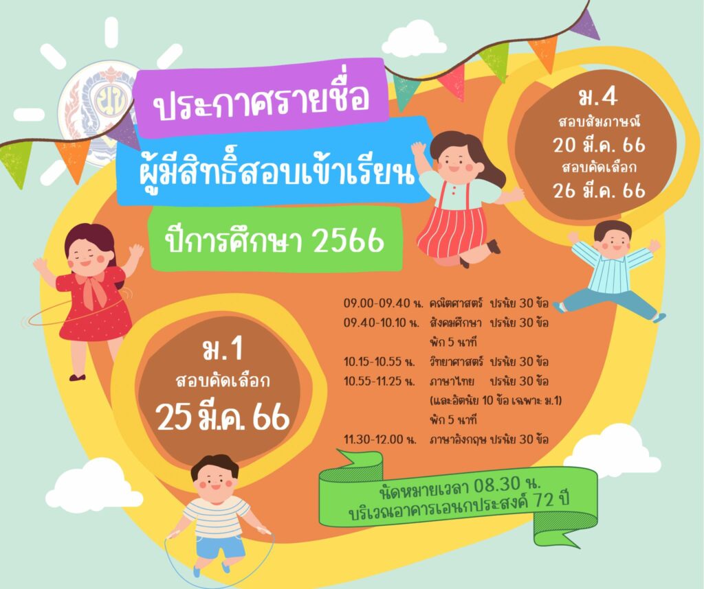 ประกาศรายชื่อนักเรียนที่มีสิทธิ์สอบเข้าเรียน ปีการศึกษา 2566 ห้องเรียนปกติ