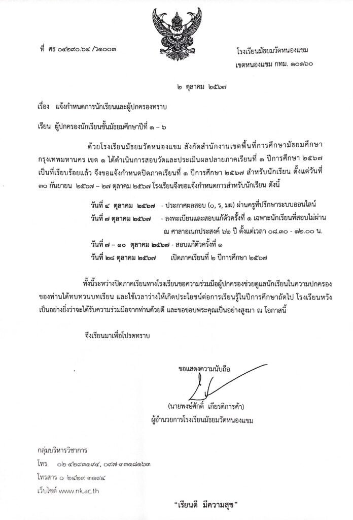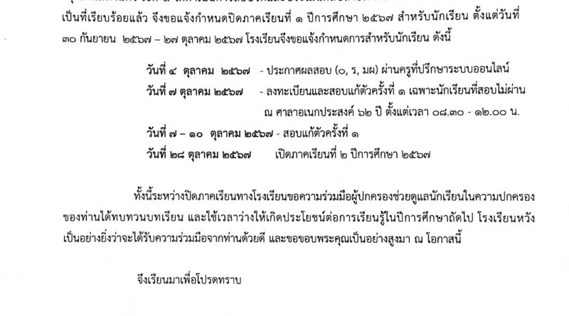 ข่าวสำหรับครูข่าวสำหรับนักเรียนประกาศ / ประชาสัมพันธ์ แจ้งกำหนดการนักเรียนและผู้ปกครอง ช่วงปิดภาคเรียน ที่ 1 ปีการศึกษา 2567 07/10/2567 admin จำนวนคนดู: 227