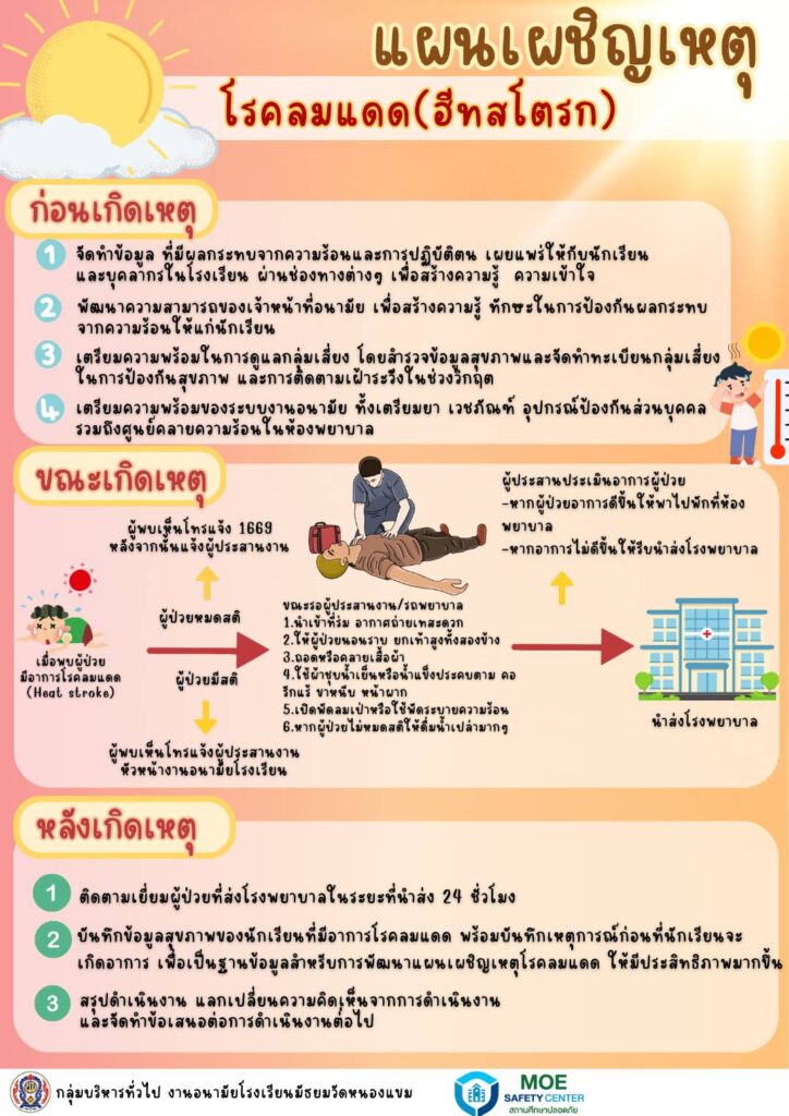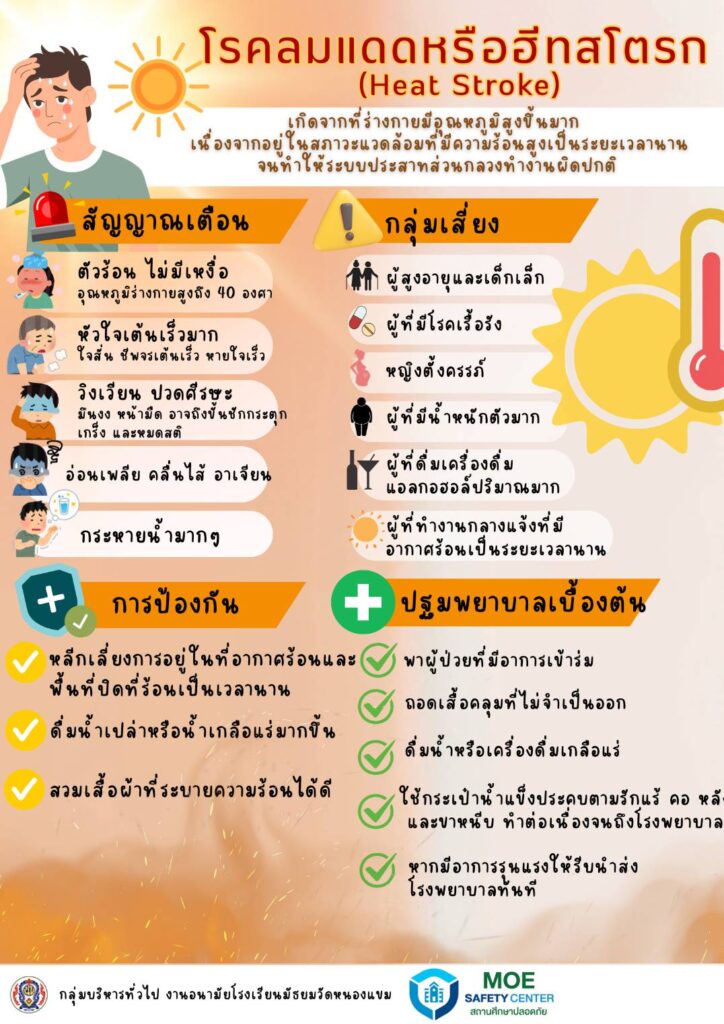 ประกาศ / ประชาสัมพันธ์ สาระความรู้และแผนเผชิญเหตุ โรคลมแดดหรือฮีทสโตรก (Heat Stroke) 28/04/2568 admin จำนวนคนดู: 38