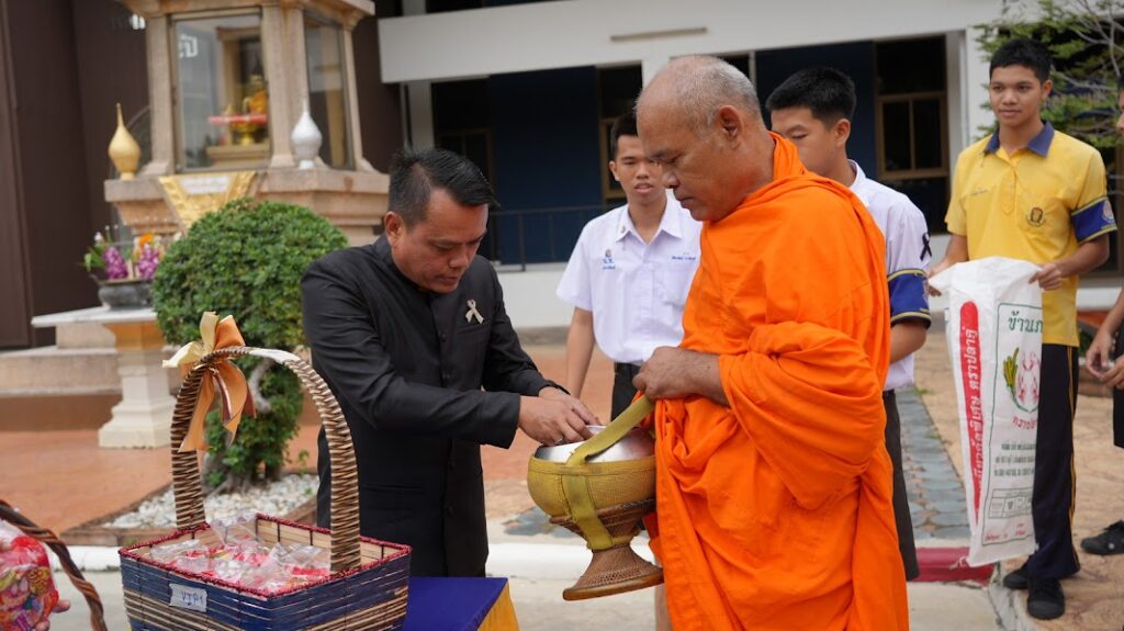 ผอ.สุริยันต์ เหล่ามะลึก ประธานในพิธีทำบุญตักบาตรถวายเป็นพระราชกุศล สมเด็จพระนางเจ้าสิริกิติ์พระบรมราชินีนาถพระบรมราชชนนีพันปีหลวง วันพฤหัสที่ 30 ตุลาคม 2568
